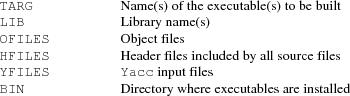 variable definitions # TARG, OFILES, HFILES, etc.