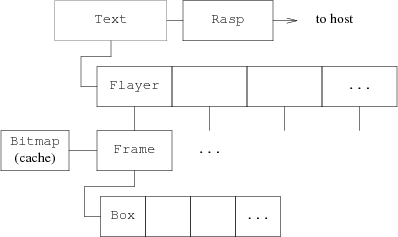 Figure 6. Data structures in the terminal. Flayers are also linked together into a front-to-back list. Boxes are discussed in the next section.